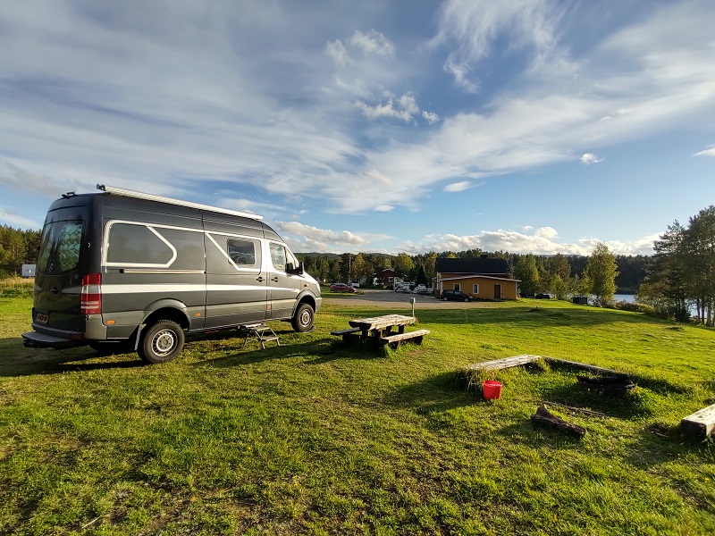 een paar dagen later in Zweden overnachten we langs een golfbaan, met toegang tot sanitair